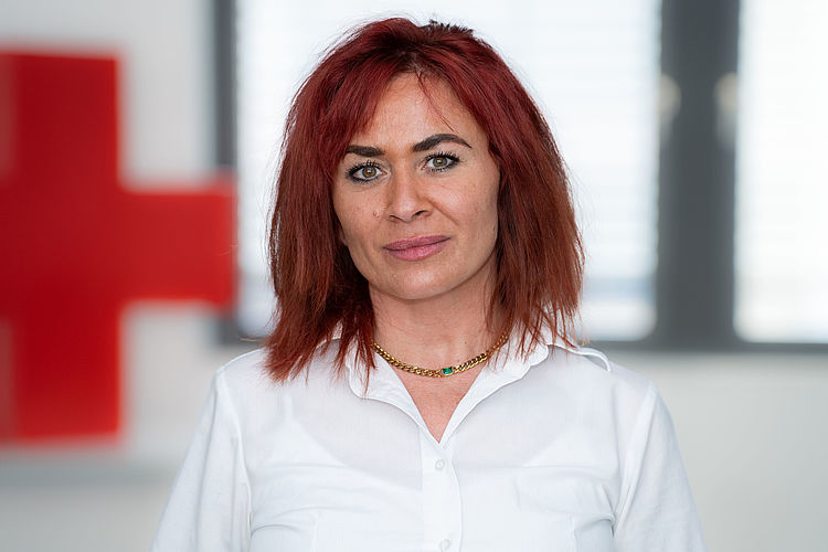 Mein Name ist Anna Aydemir. Ich leite den Ambulanten Pflegedienst im DRK Frankfurt und bin seit dem Start 2021 mit dabei. Zum Team gehören aktuell zehn Kolleg*innen und unser Bürohund „Caspar“.